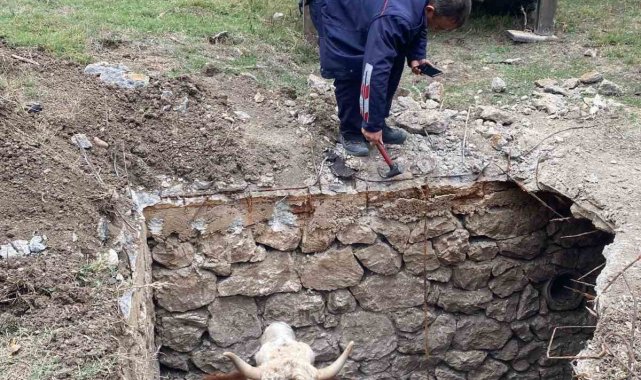 Amasya'da bir köyde üstü açık haldeki çukura düşen inek, ekiplerin çabaları sonucu vinç yardımıyla kurtarıldı.Edinilen bilgiye göre, Suluova ilçesine bağlı Kapancıağılı köyünde yaklaşık 3 derinliğindeki üstü açık çukura bir inek düştü. İneğin kuyuya düştüğünü fark eden köy sakinlerinin ihbarı üzerine Suluova Belediyesi İtfaiye Müdürlüğü ekipleri köye geldi. Çukura inen ekiplerin halata bağladığı inek vinç yardımıyla çekilerek çıkartıldı.Sahibi Mustafa Kuzucu, ineğinin kurtarılmasını sağlayan ekiplere teşekkür etti.