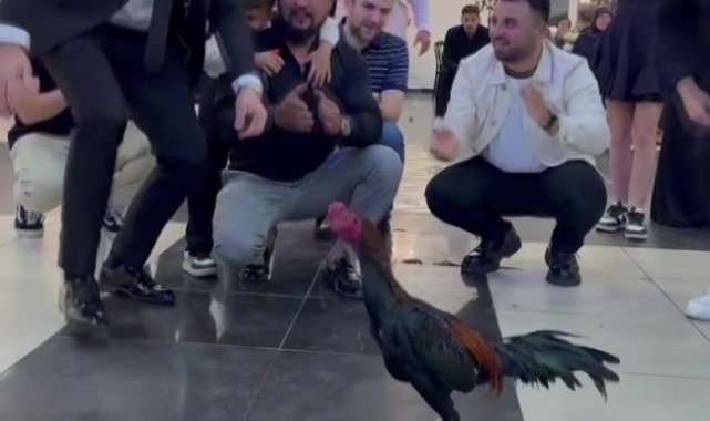 Amasya'nın Suluova ilçesinde bir düğünde damada arkadaşı tarafından 250 bin TL değerinde Hint horozu hediye edildi. Takı yerine aldığı sıra dışı hediye karşısında şaşkına dönen damat, 'Çilli' adlı horozla birlikte oynayıp eğlendi.
