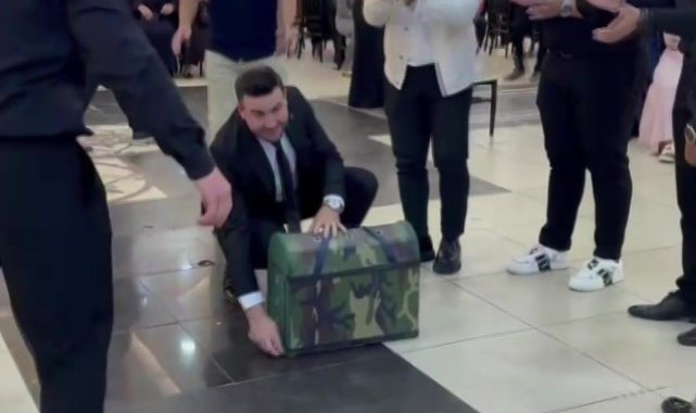 Amasya'nın Suluova ilçesinde bir düğünde damada arkadaşı tarafından 250 bin TL değerinde Hint horozu hediye edildi. Takı yerine aldığı sıra dışı hediye karşısında şaşkına dönen damat, 'Çilli' adlı horozla birlikte oynayıp eğlendi.Alaattin ile Gülay Karakullukçu çiftinin düğünlerinde damadın arkadaşlarından Burhan İnan, salonun oyun pistine bir çantayla geldi. Açılan çantanın içinden Hint horozu çıktı. Kendisine takı olarak hediye edilen horozu gören damadın ve düğüne gelenlerin şaşkınlık yaşadığı o anlar ise cep telefonu kameralarına yansıdı.'Çilli' adlı horoz yetiştiren Burhan İnan, "Yakın arkadaşım olan damada dostluğumuzun simgesi olarak kümesimizin en kıymetlisi olan Hint horozunu hediye ettim" dedi. İnan, horozun fiyatının 250 bin TL olduğunu söyledi.Damat Alaattin Karakullukçu ise "Burhan abimiz en gözde horozunu bana hediye etti. Kendisine çok teşekkür ediyorum" diye konuştu.