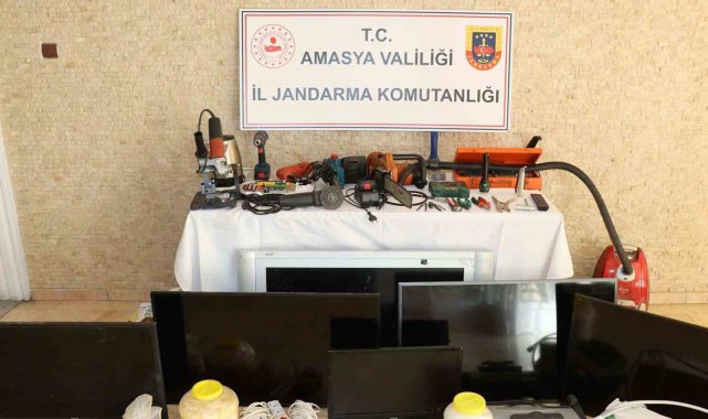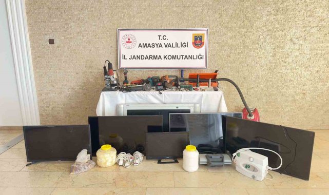 Amasya'da hırsızlar girdikleri bir evdeki bütün eşyaları çaldı. 6 televizyon, 1 poşet fındık, 1 bidon peynir, 1 bidon şeker, 1 tost makinesi ve 1 elektrikli şofbenin de bulunduğu eşyaları çaldıkları belirlenen 3 şahıs, jandarma tarafından Samsun'da yakalandı.Edinilen bilgiye göre, Amasya merkez Fındıklı Mahallesi'nde bir hafta önce meydana gelen evden hırsızlık olayıyla ilgili Amasya İl Jandarma Komutanlığı ekiplerinin yaptığı araştırmada olaya karışan aracın Samsun'dan kiralandığı belirlendi. Aracı kiralayan R.K. Samsun'un Havza ilçesinde gözaltına alındı. Sorgusunda hırsızlığı H.D ve H.D ile birlikte işlediklerini itiraf etti.R.K.'nın Havza ilçesinde bulunan ikametgâhında yapılan aramada, Amasya merkez Fındıklı Mahallesi'nde meydana gelen evden hırsızlık olayında çalınan aşağıdaki malzemeler ele geçirildi. 3 şahıs, sevk edildikleri adli makamlarca tutuklanarak cezaevine konuldu. Hırsızlık şüphelilerinin evinde bulunan malzemeler işlemlerin ardından sahiplerine teslim edildi.Ele geçirilen malzemeler arasında 5 adet ara kablo, 6 adet televizyon, 1 poşet fındık, 1 bidon peynir, 1 bidon şeker, 1 tost makinesi, 1 elektrikli şofben, 1 kumanda, 4 pense, 1 takım matkap seti, 2 el tipi hızar motoru, 3 el feneri, 1 spiral makinesi, 2 adet şarjlı el matkabı, 1 adet matkap adaptörü, 1 adet matkap şarj cihazı, 1 adet plastik kaynak makinesi, 2 adet süpürge makinesi, 1 adet elektrikli ocak yer alıyor.