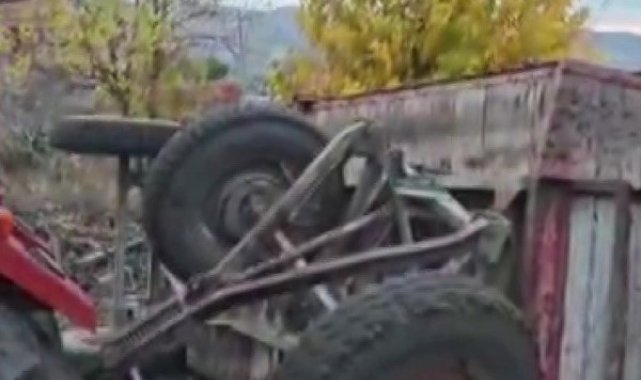 Edinilen bilgiye göre Amasya'nın Göynücek ilçesine bağlı Kışlabeyi köyünde yaşayan çiftçi Semih Pelit, tarladan hasat edilen 8 ton şeker pancarını traktör römorkuna yükleyip teslim etmeye gitti. Kaygan yolda yokuşta kalan traktör bir anda geri geri manevra yaptı. Kontrolden çıkan römork yan yatarak devrildi. Korku dolu anlar genç çiftçinin ağabeyinin cep telefonu kamerasına saniye saniye yansıdı.