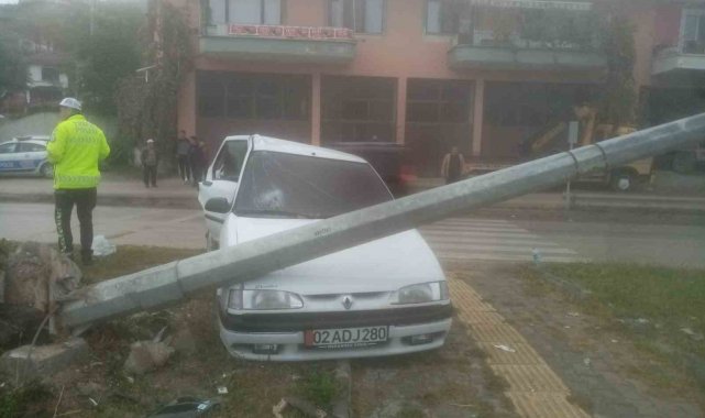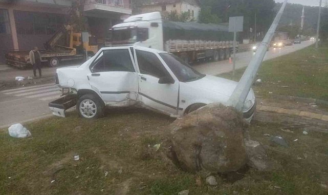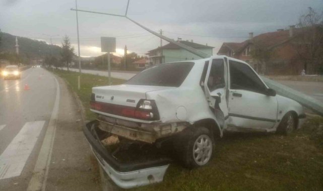 Amasya'da yolda kontrolden çıkan otomobil, refüje dalıp çarptığı aydınlatma direğini yere serdi. Kazada 1 kişi yaralandı.