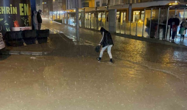 "Avrupa kenti" olarak anılan Eskişehir'de akşam saatlerinde aniden bastıran yağmur dakikalar içinde bazı bölgeleri göle çevirirken, tramvay seferleri aksadı, bazı işletmeleri ise su bastı.Odunpazarı ilçesi Emek ve 71 Evler mahallelerinde akşam saatlerinde aniden bastıran gök gürültülü sağanak yağmur, dakikalar içinde cadde ile ana arterleri göle çevirdi. Selden dolayı şehiriçi ulaşımda aksamalar yaşanırken, tramvay seferleri de aksadı. İlerleyemeyen tramvaylar yolcuları yol ortasında indirmek zorunda kaldı. Tramvaydan inen yolcuların biriken sudan ötürü karşıdan karşıya geçemediği gözlendi. Bir annenin bebeği ve küçük kızını aynı bebek arabasına bindirerek su birikintisinde karşıdan karşıya geçirmeye çalıştığı anlar ise kameraya yansıdı.Esnaf dükkanına giren suları tahliye ettiÖzellikle Ziyapaşa Caddesi'nde bazı iş yerlerini yağmur suyunun bastığı görüldü. Esnaf, kendi imkanlarıyla dükkanlarına dolan pis suyu tahliye etmeye çalıştı. Vatandaşlar, dakikalar içinde sel oluştuğunu ve altyapının yetersiz olduğunu belirttiler.