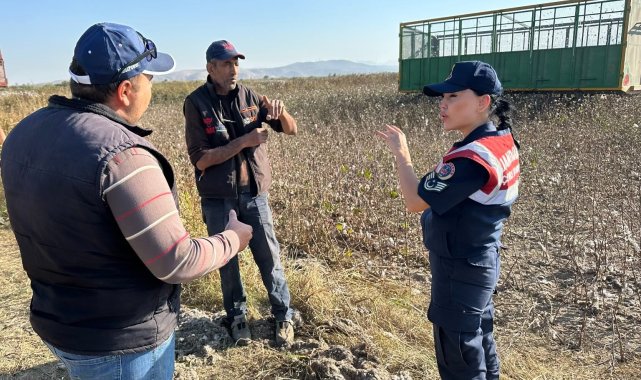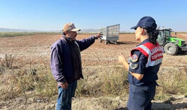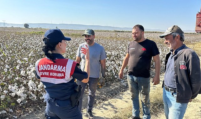 Aydın'ın Didim ilçesinde pamuk tarlasına inen jandarma ekipleri, anız yakımı konusunda üreticileri uyarırken, anız yakmanın dekar başına 386,79 TL cezası olduğu hatırlatıldı.