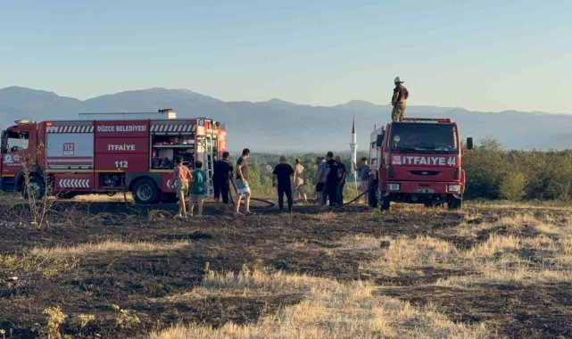 Düzce'de anız yangını rüzgarın etkisi ile ormana sıçradı. Yangında 10 dönüm arazi küle döndü.Yangın, Konuralp Tepecik Mahallesi mevkiinde meydana geldi. Alınan bilgilere göre, Tepecik Mahalle caminin önünde belirlenemeyen bir sebeple anız yangını çıktı. Rüzgarın etkisi ile hızla büyüyen yangın ormanlık alana sıçradı. Vatandaşlar yangını söndürme çalışması gerçekleştirirken, bölgeye Düzce Belediyesi İtfaiye Müdürlüğü ekipleri de sevk edildi. Kısa süre içerisinde bölgeye ulaşan ekipler 10 dönümlük alanda etkili olan yangına müdahalede bulundu. Rüzgarın etkisi ile hızla büyüyen yangın vatandaşların ve itfaiye ekiplerinin çalışması ile yaklaşık 1 saatlik çalışma ile söndürülerek kontrol altına alındı. Yangında 10 dönümlük alan küle döndü.Öte yandan ormanlık alanda çıkan yangın ve söndürme çalışmaları havadan drone ile görüntülendi.