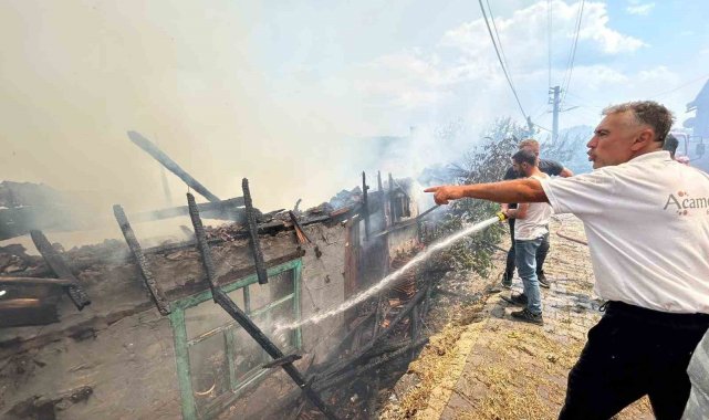 Antalya'nın Akseki ilçesinde çıkan anız yangını düğmeli evlere sıçradı. Yangında 100 yıllık iki düğmeli ev küle döndü, yakınındaki iki ev de zarar gördü.Yangın saat 11.30 sıralarında Akseki ilçesine 60 kilometre mesafedeki Bademli Mahallesi'nde meydana geldi. Edinilen bilgiye göre, anızda çıkan yangın rüzgarın etkisiyle bir anda büyüdü. Dumanları fark edenler orman ve itfaiye ekiplerine durumu bildirdi. Bu sırada mahalle sakinleri de alevlere müdahalede bulundu. Yangın bir süre sonra ise iki düğmeli eve sıçradı. Yangın ekiplerin müdahalesi sonucu söndürülürken, 100 yıllık iki düğmeli ev küle döndü, bu evlere yakın noktadaki iki farklı evde de zarar meydana geldi.Yangın anında bir sincabın da korkup telefon direğine çıktığı ve ardından da atladığı görüldü.Kaymakam: "Allah'a şükür can kaybımız yok"Akseki Kaymakamı İbrahim Cem Deveci yaptığı açıklamada, yangında 4 evin zarar gördüğünü belirterek, "Allah'a şükür can kaybımız yok. Şuan yangın kontrol altına alındı. Vatandaşlarımıza geçmiş olsun, kendilerine gerekli desteği sağlayacağız" dedi.Evlerinin küle döndüğünü belirten Adem Ünal, "Baba ocağımız vardı, 8 odalı bir düğmeli ev. Hepsi yandı. Amcamızın da evi yandı. İstanbul'dan tatile geldiğimiz evdi, tamamı gitti. Hiçbir eşyamızı kurtaramadık" diye konuştu.Ercan Ünal da "Yazları gelince burada kalıyorduk. Tüm eşyalarımızı kurtaramadık" dedi.Jandarma ve olay yeri inceleme ekipleri yangının çıkış nedeniyle ilgili inceleme başlattı.