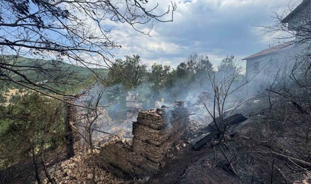 Anızda çıkan yangın asırlık düğmeli evleri küle döndürdü