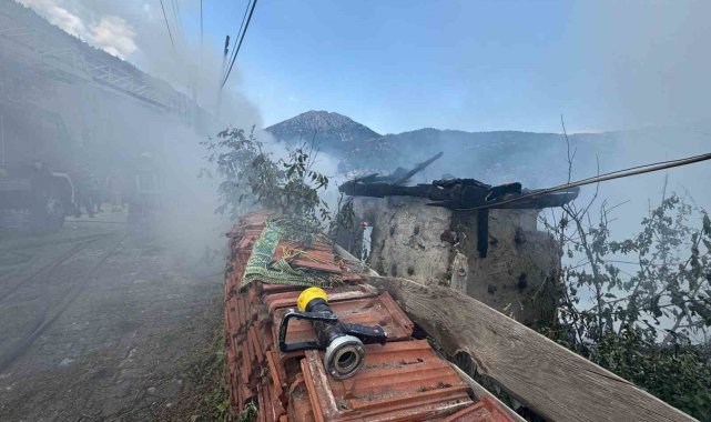 Antalya'nın Akseki ilçesinde çıkan anız yangını düğmeli evlere sıçradı. Yangında 100 yıllık iki düğmeli ev küle döndü, yakınındaki iki ev de zarar gördü.