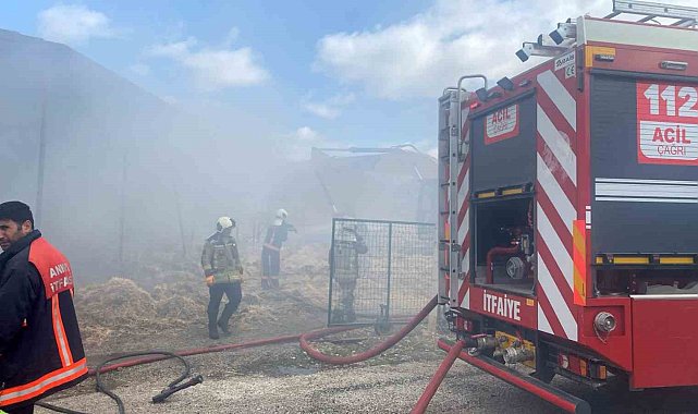 Ankara'nın Akyurt ilçesinde bir ahırda saman balyalarının tutuşmasıyla yangın çıktı.
