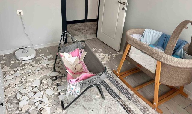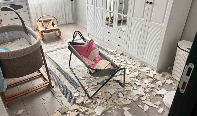 Ankara'da bir apartman dairesinde bebek odasının tavan sıvası düştü. Bebek, babası tarafından saniyelerle ölümden kurtarıldı.