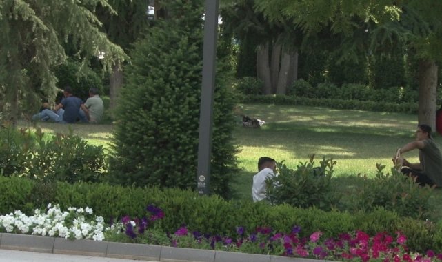 Ankara'da mevsim normallerinin üzerinde seyreden hava sıcaklıkları hem dışarı çıkan vatandaşı, hem de çalışan esnafı zorluyor.Ankara'da termometreler 35 derecenin üstüne çıktı. Dışarı çıkan vatandaşlar, gölge yerlerde vakit geçirirken serinlemek için dondurma ve soğuk içeceklere yöneldi. Esnaf ise sıcak havada çalışmaktan şikayetçi olsa da bunun bir zorunluluk olduğunu ifade etti.Bir kokoreç dükkanında çalışan Hızır Uzuner, sıcak havalarda ocak başında çalışmanın zorluklarından bahsederek, "Hava dışarıda 35 dereceyse burada 40-45 dereceye çıkıyor. Buharlaşıyoruz bildiğiniz. Çok sıcak oluyor, zorlanıyoruz, terliyoruz. Soğuk havada da zor oluyor ama sıcak daha zor" dedi."Gözlüksüz gezemiyoruz"Öğle saatlerinde gezmek için dışarı çıkan Erdem Koç ise, sıcak havaların kendisini kötü etkilediğini anlatarak, "Gezmeye giderken bile çok kötü etkileniyoruz. Zaten sürekli duş almak zorunda kalıyoruz terlediğimiz için. Gözlüksüz de gezemiyoruz" diye konuştu.Simitçi Halis Kara da sıcak havalara rağmen güneşin altında çalışmak zorunda olduğunu dile getirerek, Yapacak bir şey yok ekmek parası mecbur çalışıyoruz. Serinlemek için başımı yıkıyorum sürekli, saçımı ıslatıyorum" ifadelerini kullandı."Eli dolu eve gittiğinde sıcak hava etkilemiyor"Kızılay'da parklarda dolaşarak çay satan bir vatandaş, "Ben bugün çalışmayıp eve gittiğim zaman, çoluk çocuk yiyecek istediği zaman bana koyuyor. Ama çalışıp eve gittiğim zaman sıcak hava etkilemiyor. Mecbur çalışacaksın" açıklamasında bulundu.Hava sıcaklıklarının Temmuz ayı boyunca mevsim normallerinin üzerinde seyretmesi bekleniyor.