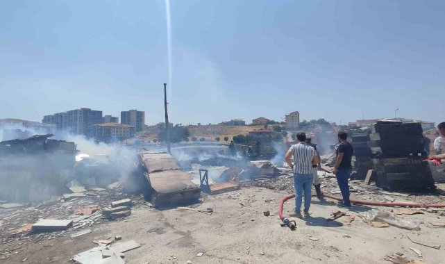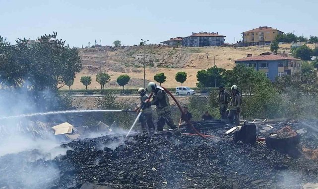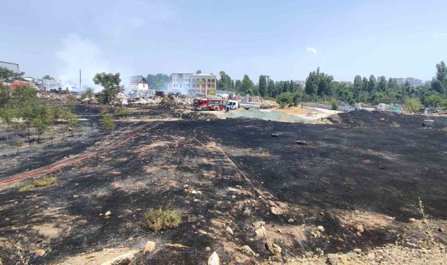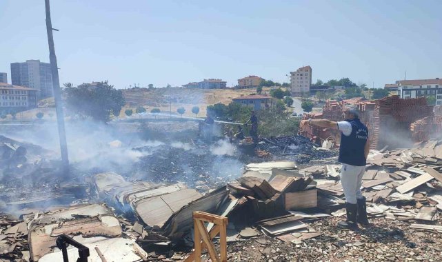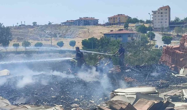 Ankara'da otluk alanda çıkan yangın fayans deposunu küle çevirdi