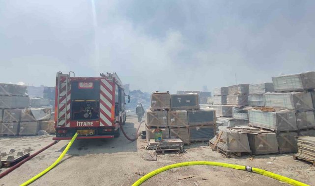 Ankara'da otluk alanda çıkan yangın hızla büyüdü. Yangın, fayans deposuna sıçrayarak maddi hasara neden oldu.