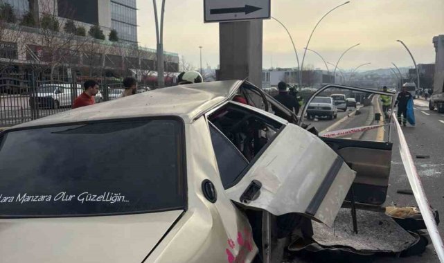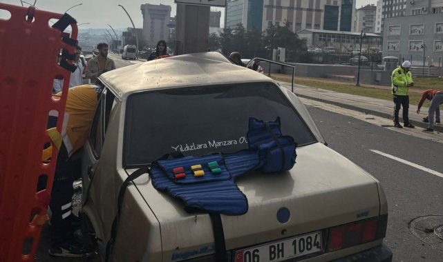 Ankara'da otomobil bariyerlere çarptı: Sürücü araç içerisinde sıkıştı
