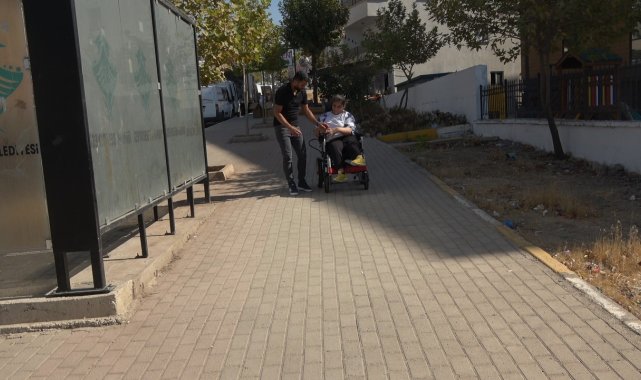 Şırnak'ın Cizre ilçesinde yaşayan engelli genç kıza, Ankara'da görev yapan polis memuru Mustafa Şahin tarafından "Gönüllere Dokunma Projesi" kapsamında akülü sandalye hediye edildi.