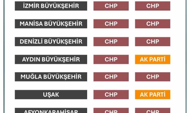 Ülke genelinde anket çalışmaları yapan bir araştırma şirketi, Ege Bölgesi'nde yaptığı son anket çalışmalarının sonuçlarını açıkladı.2026 yılının ilk üç ayına ait verilerle hazırlanan araştırma sonuçları, Ege Bölgesi'nde yerel seçimlere ilişkin güncel tabloyu ortaya koydu. Sonuçlara göre Aydın, Uşak ve Kütahya sınırlarında yaşayan vatandaşların son seçimlere göre tercih değiştirdiği belirtildi. Araştırmada Aydın Büyükşehir Belediyesi için dikkat çeken bir değişim de görüldü. 31 Mart 2024 yerel seçimlerinde büyükşehir belediyesini Cumhuriyet Halk Partisi (CHP) kazanırken, son anket verilerine göre bugün seçim yapılması halinde Adalet ve Kalkınma Partisi'nin (AK Parti) ilk sırada yer aldığı belirtildi. Sonuçlarda Aydın Büyükşehir Belediye Başkanı Özlem Çerçioğlu'nun CHP'den AK Parti'ye geçmesiyle birlikte seçmenin de tercihini Çerçioğlu ile birlikte AK Parti'den yana kullandığı görüldü.