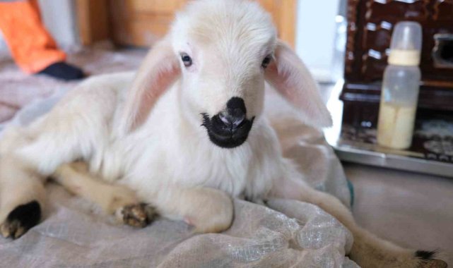 Annesinin reddettiği engelli kuzuya evde bebek gibi bakılıyor
