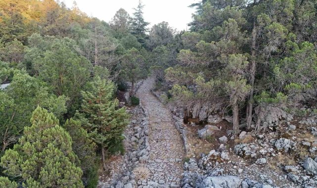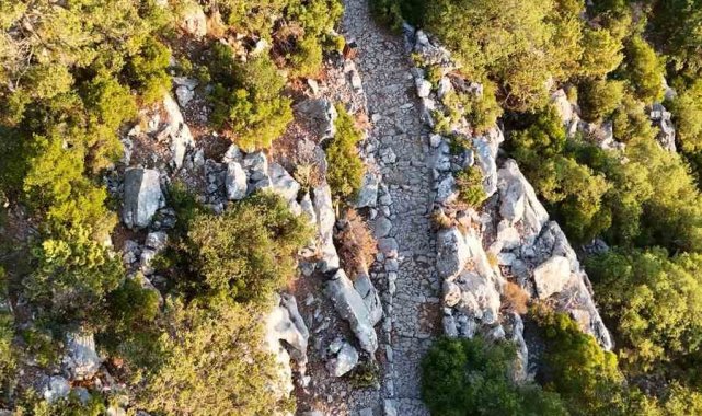 Antalya'da 3 bin 650 metrelik tarihi Kervan Yolu rotası dron ile görüntülendi