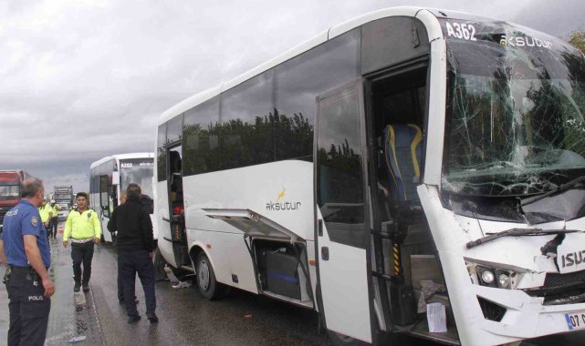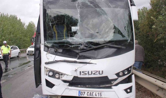 Antalya'nın Serik ilçesinde 4 aracın karıştığı zincirleme kazada 2 Alman turist yaralandı.Kaza, saat 15.00 sıralarında D400 kara yolu, Cumalı Mahallesi'nde meydana geldi. Edinilen bilgiye göre, seyir halindeki 07 JL 838 plakalı kamyon, kontrolden çıkarak aynı yönde seyreden 07 CFP 751 plakalı otomobil ile 07 CAE 415 plakalı tur midibüsüne çarptı. Çarpmanın etkisiyle midibüs, 48 H 5595 plakalı kamyona arkadan çarptı.Zincirleme kaza sonrası ihbar üzerine olay yerine sağlık, itfaiye ve polis ekipleri sevk edildi. Kazada yaralanan midibüsteki 2 Alman turist, sağlık ekiplerince yapılan ilk müdahalenin ardından ambulanslarla hastaneye sevk edildi.Yaralı turistlerin sağlık durumlarının iyi olduğu öğrenilirken, kazayla ilgili inceleme başlatıldı."Hastane dönüş yolunda kaza yaptık"Kazada otomobilde yolcu olarak bulunan ve hastaneden taburcu olduktan sonra dönüş yolunda kaza geçirdiklerini anlatan Onur Çetin, "Mavi kamyon bizim arabaya vurdu. İki arabanın arasından sıyrıldık. Sonra mavi kamyon otobüse vurdu, otobüs de kırmızı kamyona çarptı. Biz hastaneden geliyorduk, az kalsın yine hastaneye dönüyorduk" dedi.