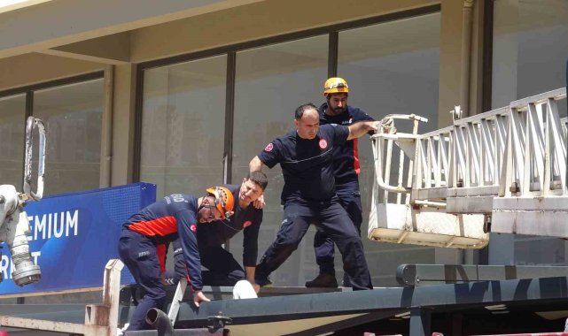 Antalya'da 4. kat balkonundan zemin kattaki iş yerinin tentesine düşen genç adam itfaiye, AFAD ve vatandaşların ortak çalışması ile kurtarılarak hastaneye kaldırıldı.