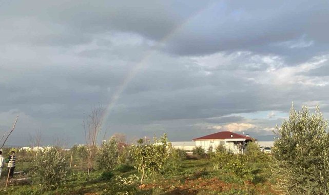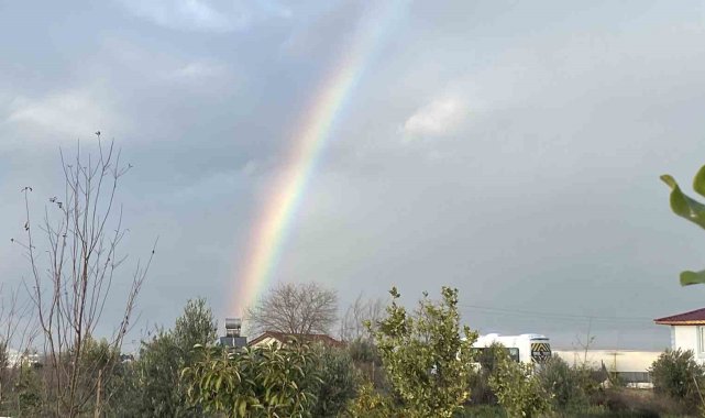 Antalya'da etkili olan yağmurun ardından Aksu ilçesinde beliren çifte gökkuşağı görsel şölen oluşturdu.