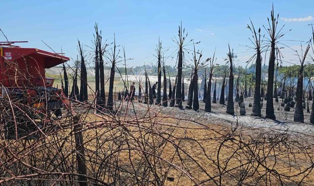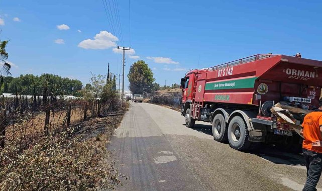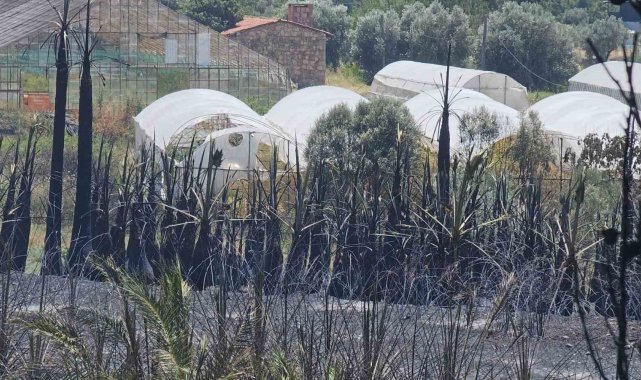 Antalya'nın Aksu ilçesinde kırsal alanda çıkan yangında palmiye ve zeytin ağaçları zarar görürken, bazı naylon seralarda da hasar meydana geldi.