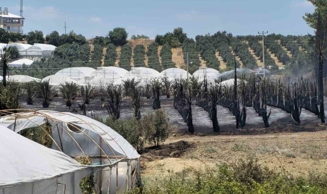 Antalya'nın Aksu ilçesinde kırsal alanda çıkan yangında palmiye ve zeytin ağaçları zarar görürken, bazı naylon seralarda da hasar meydana geldi.Aksu ilçesine bağlı Kurşunlu Mahallesi Hacılar mevkii Mehmet Akif Caddesi'nde meydana gelen yangın, bölge sakinlerini korkuttu. Yangında zeytinlik ve palmiye ağaçları zarar görürken, rüzgarın etkisiyle alevler çevredeki seralara sıçradı. İlk belirlemelere göre 3 naylon serada hafif hasar meydana geldi. Ayrıca bölgede bulunan bir çadır içindeki malzemeler de yandı.Ekiplerin müdahalesiyle yangın kontrol altına alınırken, bölgede soğutma çalışmaları devam ediyor. Yangının çıkış nedeniyle ilgili inceleme başlatıldı.