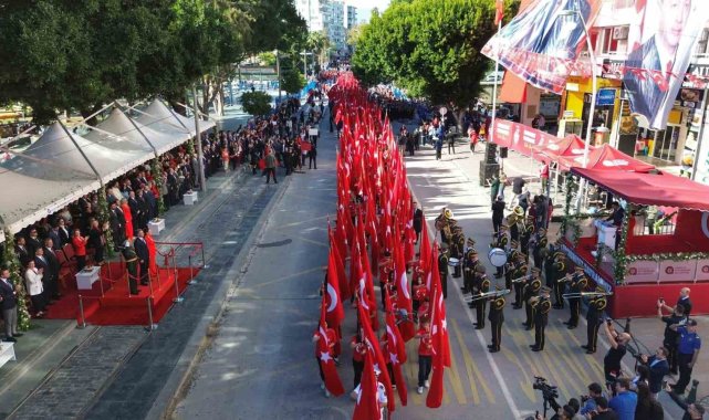 Antalya'da 29 Ekim Cumhuriyet Bayramı, Cumhuriyet Meydanı'nda düzenlenen törenlerle büyük coşkuyla kutlandı. Sabah saatlerinde gerçekleştirilen programa vatandaşlar yoğun ilgi gösterdi. Cumhuriyet'in ilanının 102'nci yılı dolayısıyla Antalya'da gerçekleştirilen 29 Ekim törenlerinde halk, meydanı doldurarak bayram coşkusuna ortak oldu. Protokolün halkı selamlamasıyla başlayan törende geçit töreni, konuşmalar ve halk oyunları gösterileri yer aldı.Antalya Valisi Hulusi Şahin, Büyükşehir Belediye Başkan Vekili Büşra Dirgen Özdemir ve Antalya Garnizon Tören Komutanı Tümgeneral Sinan Eren tören aracından geçit alanını dolduran halkı selamlayarak Cumhuriyet Bayramı'nı kutladı. Saygı duruşu ve İstiklal Marşı'nın ardından Antalya Valisi Hulusi Şahin günün anlam ve önemine yönelik konuşma yaptı.Vali Şahin, konuşmasında Türkiye Cumhuriyeti'nin kuruluş sürecine ve bugün geldiği noktaya vurgu yaptı. Konuşmasında Türkiye'nin ekonomik ve nüfus gelişimine ilişkin rakamsal örnekler de paylaşan Şahin, Cumhuriyet'in kurucusu Gazi Mustafa Kemal Atatürk'ün sözleriyle gençlere seslendi: "Ey yükselen yeni nesil, istikbal sizsiniz. Cumhuriyeti biz kurduk, onu yükseltecek ve yaşatacak olan sizlersiniz."Barikatların açılmasıyla halk tören alanına girdiTörende zaman zaman dikkat çeken anlar da yaşandı. Polis barikatlarının ardında töreni izleyen vatandaşlar, alana giriş yapmak için seslerini yükseltti. "Geçmiş yıllarda böyle bir uygulama olmadığını" dile getiren kalabalığın isteği üzerine Vali Şahin'in talimatıyla barikatlar açıldı ve vatandaşlar tören alanına alındı.Vali Şahin'in konuşmasının ardından, Cumhurbaşkanı Recep Tayyip Erdoğan'ın 29 Ekim Cumhuriyet Bayramı mesajı okundu. Büyükşehir Belediyesi İsmail Baha Sürelsan Konservatuvarı orkestrası ile Sultan Efe Ortaokulu halk oyunları ekibi sahne aldı.Geçiş töreni, ortaöğretim ve lise öğrencilerinin bayrak geçişiyle başladı; gazi ve şehit aileleri dernekleri, 3'üncü Piyade Tugay Komutanlığı birlikleri, jandarma, emniyet ve zabıta ekipleri ile atlı birliklerin yer aldığı kortej ile sona erdi. Cumhuriyet coşkusuna ortak olan vatandaşlar, korteji alkışlarla selamladı.