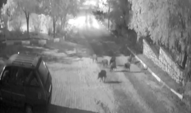 Antalya'da domuz sürüsü gece yarısı köye indi: O anlar kameraya yansıdı