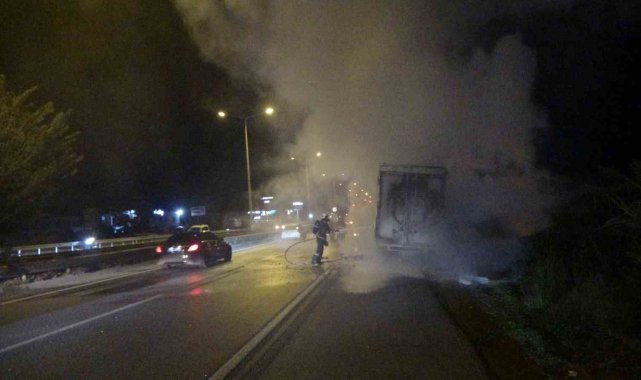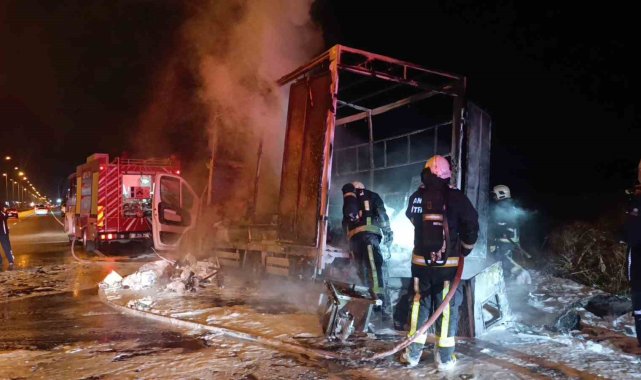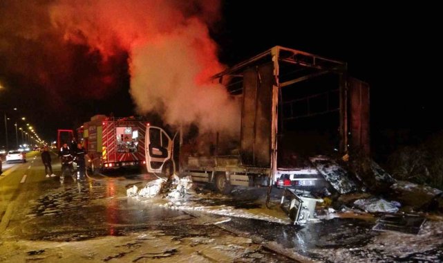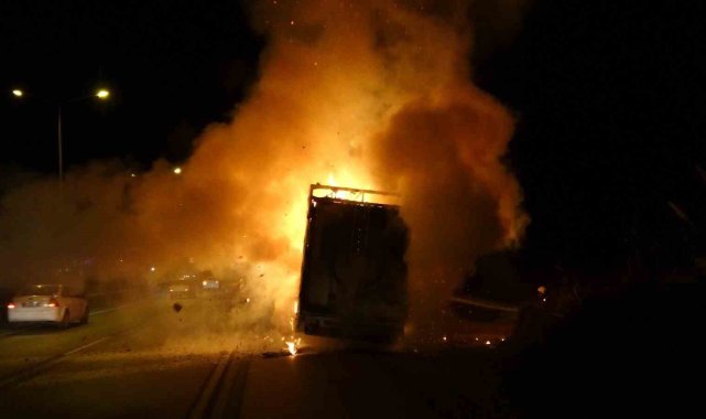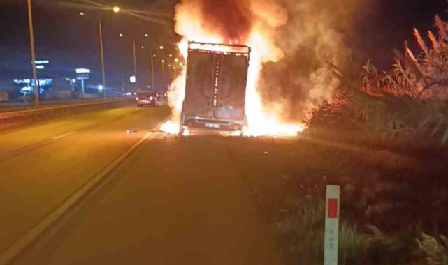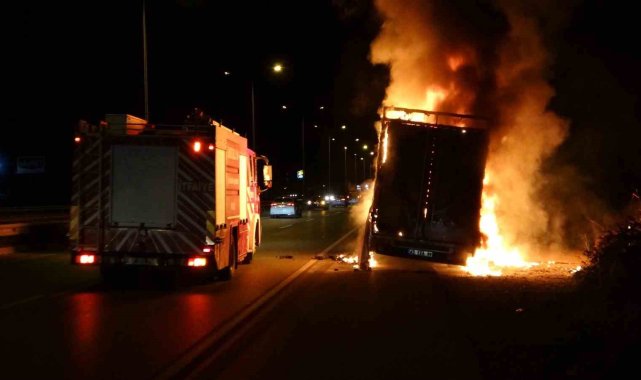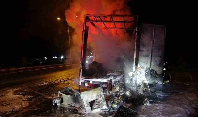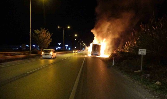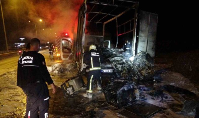 Antalya'da elektronik eşya yüklü nakliye aracı alev alev yandı