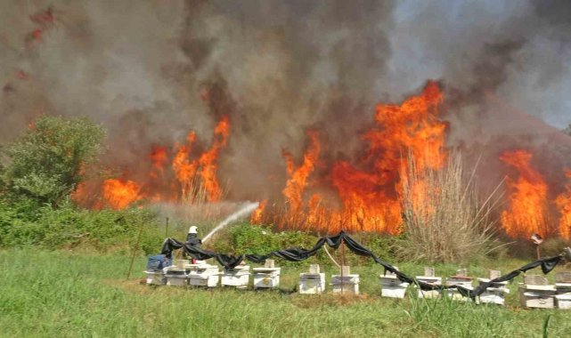 Antalya'da kargılık alanda çıkan yangın, rüzgarın etkisiyle bir anda büyüyüp bazı yerleşim yerleri ve işyerlerini tehdit etti. Yangın ile evlerin arasına girerek set olan itfaiye erleri ise, yanı başlarına kadar gelen alevlere karşı bir adım daha geri atmayıp yangının sıçramasını önledi.Muratpaşa ilçesi Yeşilova Mahallesi 1687 sokak yakınında bulunan kargılık alanda henüz bilinmeye bir nedenden ötürü çıktı. İhbarla birlikte bölgeye çok sayıda itfaiye ekibi ve polis sevk edildi. Yangın rüzgarla birlikte bir anda büyürken, dumanlar kilometrelerce uzaklıktan göründü, alevler yakında bulunan bazı ev ve işyerlerini tehdit etti. Polis ekipleri yangın noktasından geçen sokağı trafiğe kapatırken, itfaiye ekipleri de alevlere müdahaleye başladı.Bir adım geri atmadılarŞiddetli rüzgarla birlikte alevler ev, işyeri ve arı kovanlarının bulunduğu alana yönelince yürekler ağza geldi. İtfaiye erleri, yangın ile yerleşim noktalarının arasına girip set oldu. Yanı başlarına kadar gelen alevler karşısında bir adım dahi geri atmayan erler, alevleri söndürüp sıçramasını önledi.Arı kovanlarını ve evlerini korumaya çalışan Salih Gönceoğlu, bölgede daha önce de yangın çıktığını ve yangını ormanlık alana gelen madde bağımlıların çıkardığını ileri sürdü.Yangın yaklaşık 1 saatlik çalışmasının ardından söndürülürken, bölgede ekiplerin soğutma çalışması sürüyor.
