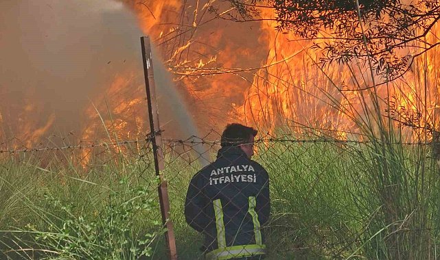 Antalya'da kargılık alanda çıkan yangın, rüzgarın etkisiyle bir anda büyüyüp bazı yerleşim yerleri ve işyerlerini tehdit etti. Yangın ile evlerin arasına girerek set olan itfaiye erleri ise, yanı başlarına kadar gelen alevlere karşı bir adım daha geri atmayıp yangının sıçramasını önledi.