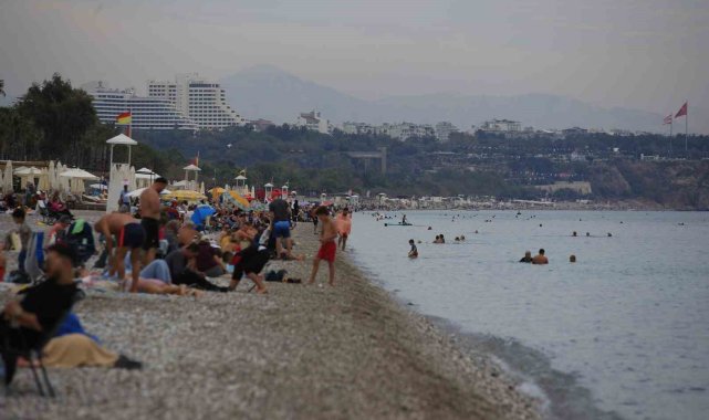 Kasım ayı ile birlikte yurtta kış mevsimi yüzünü göstermeye başlarken Antalya'da hafta sonunu fırsat bilen kent sakinleri ve yabancı turistler Konyaaltı Sahili'nde denize girdi.