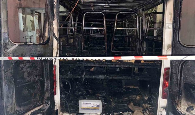 Antalya'nın Serik ilçesinde park halindeki bir minibüs, henüz belirlenemeyen bir nedenle çıkan yangında tamamen yanarak kullanılamaz hale geldi.