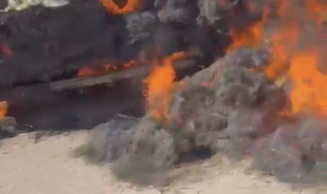 Antalya'da seyir halindeki traktörde saman balyaları alev alev yandı
