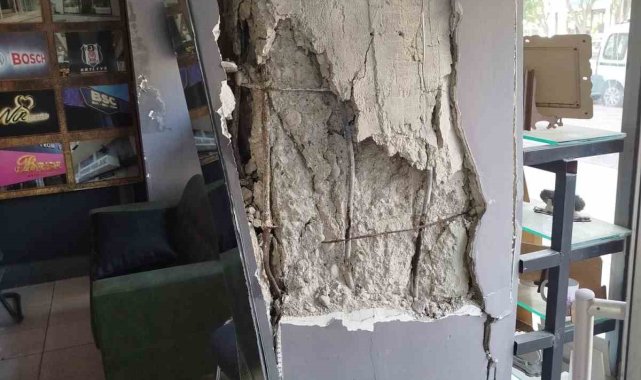 Antalya'nın Muratpaşa ilçesinde 7 katlı bir apartmanda kolon çatlağı tespit edildi. Zemin kattaki iş yerinde betonun parçalanıp demirlerin eğildiği kolon hasarı nedeniyle apartman tedbir amaçlı mühürlenerek tahliye edildi.
