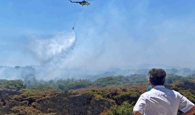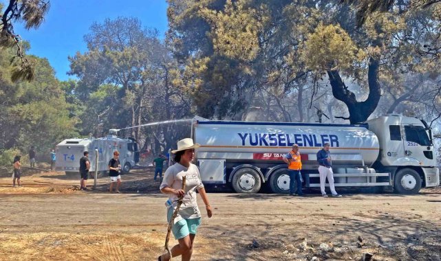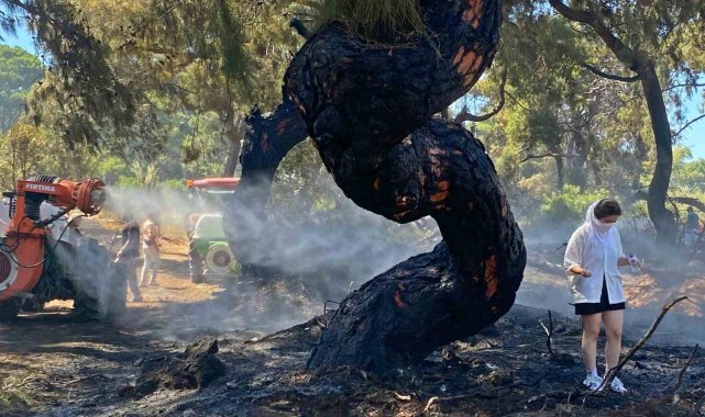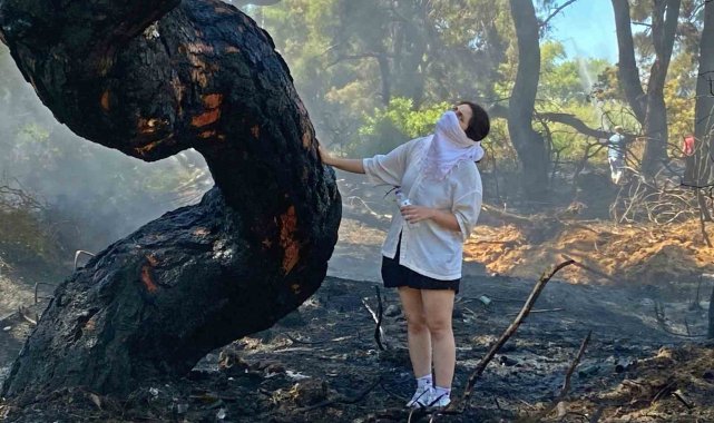 Antalya'nın Muratpaşa çıkan orman yangını, havadan ve karadan müdahale sonucu yaklaşık 4 saatlik çalışmanın ardından kontrol altına alındı. Yangın sonrası bir vatandaşın ormanın içinde yer alan tek katlı evi küle dönerken, bir genç kadın da her gün koşu yaptığı ormanlık alandaki yanan ağaçlara uzun süre bakıp dokundu. Kalp rahatsızlığı olan klimacı bir genç ise, işe giderken yangını görüp alevlerin arasına daldı.Antalya'nın Muratpaşa ilçesine bağlı Güzeloba Mahallesi'nde saat 11.00 sıralarında orman yangını çıktı. Rüzgarın etkisiyle bir anda yayılan alevler yerleşim yerlerini tehdit ederken, bölgeye Orman Bölge Müdürlüğü, itfaiye ekipleri ve TOMA'lar sevk edildi. Ekiplere havadan helikopter ve uçaklar da destek verdi. Bölge halkı sakinlerinin de söndürme çalışmalarına destek verdiği yangın, yaklaşık 4 saatlik çalışmanın ardından büyük bir bölümü kontrol altına alınabildi. Yangında bir vatandaşın ormanlık alandaki tek katlı müstakil evi de yanarak küle döndü.Evi yandı, gözyaşlarını tutamadıYangında evi yanan Mustafa Cebeci, "Bu taraftan duman çıkıyordu, geldiğimde alevler evime doğru geliyordu. Hortumları çalıştırdım alevler içinde kalınca eve sıçradı. Sonra itfaiye ve orman ekipleri geldi. Evimde zararım var. Annemle yaşıyorduk bu evde. Allah'a şükür canımızda bir şey yok ama malımıza, emeklerimize yazık oldu. Burası 46 senelik bir yer, böyle bir şey olamaz" diyerek gözyaşı döktü.Kalp rahatsızlığı olan genç alevlerin arasına girdi21 yaşındaki Furkan Aydın, "Kalp rahatsızıyım. Klima takmaya gelmiştim müşteriye. Arayıp gelemeyeceğimi söyledim müşteriye. Buraya yardım etmem gerekiyordu. Şimdi diğer tarafa gideceğiz. Her yere girdik, daha da yardım edeceğiz"Bu ağaçların yanması duygulandırıyor beniHer gün koşu yaptığı yolda ağaçların yandığını görüp duygu dolu anlar yaşayan bir bölge sakini kadın da, "Burası normalde benim koşu yolumdu. 15 senedir ilk defa buradaki ağaçlar yanıyor. Bu kadar ağacın yanması duygulandırıyor beni. Can kaybı yok diyorlar ama bunlarda can sonuçta" dedi.