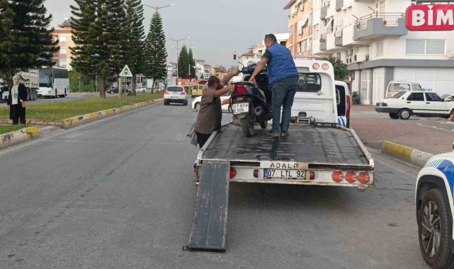 Antalya'nın Manavgat ilçesinde polis ekiplerince gerçekleştirilen asayiş ve trafik uygulamasında ehliyetsiz yabancı uyruklu motosiklet sürücüsü ve araç sahibine toplam 38 bin 347 TL ceza kesilirken, motosiklet trafikten men edildi.Manavgat İlçe Emniyet Müdürlüğü ekipleri, vatandaşların huzuru ve trafik güvenliğini sağlamak amacıyla kent genelinde sürdürdüğü denetimlerine Alparslan Türkeş Bulvarı'nda devam etti. Uygulama sırasında durdurulan 27 ARV 106 plakalı motosikletin sürücüsü Muhammed A.'nın yabancı uyruklu olduğu ve sürücü belgesinin bulunmadığı tespit edildi. Ayrıca sürücünün kask takmadığı da belirlendi. Manavgat Emniyet Müdürlüğü Trafik Denetleme Büro Amirliği ekiplerince motosiklet sürücüsüne kask takmamak ve sürücü belgesiz araç kullanmaktan, motosiklet sahibine ise ehliyetsiz kişiye araç kullandırmaktan toplam 38 bin 347 TL para cezası uygulandı. Polis ekipleri, motosikleti trafikten men ederek, çekici vasıtasıyla yediemin otoparkına götürdü.