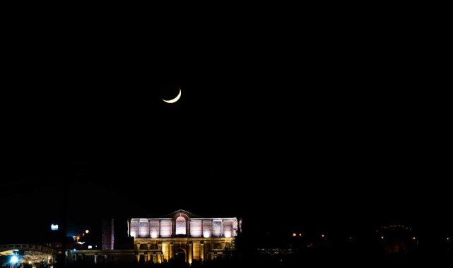 Manisa'nın Salihli ilçesinde bulunan Sardes Antik Kenti'ndeki Gymnasium binası ile ayın hilal hali aynı karede buluştu.