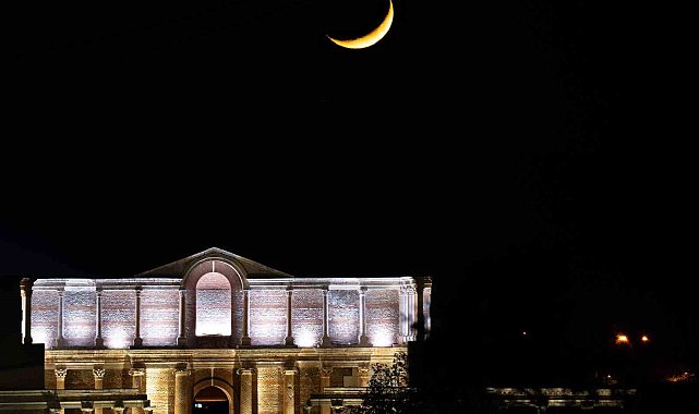 Manisa'nın Salihli ilçesinde bulunan Sardes Antik Kenti'ndeki Gymnasium binası ile ayın hilal hali aynı karede buluştu.Lidya Uygarlığı'nın başkenti olarak bilinen ve Manisa'nın Salihli ilçesinde yer alan Sardes Antik Kenti'nde, Kültür ve Turizm Bakanlığı tarafından başlatılan gece müzeciliği uygulaması kapsamında önemli bir adım atıldı. Geçtiğimiz yıl gerçekleştirilen Kültür Yolu Festivali kapsamında gece müzeciliğinin başlatıldığı ve bu yıl mayıs ayında gece müzeciliğine kapılarını açması planlanan uygulama ile birlikte antik kentteki Gymnasium binası gece saatlerinde de ziyaret edilebilecek. Kültür ve Turizm Bakanlığı'nın turizmi çeşitlendirmek ve ziyaretçi deneyimini artırmak amacıyla hayata geçirdiği gece müzeciliği uygulaması kapsamında kentin tarihi dokusunu ön plana çıkaran aydınlatmasıyla Gymnasium binası, geceleri de ihtişamını sergileyecek. Gece müzeciliği ile bölgenin turizm gelirinde de önemli bir katkı sunulması hedefleniyor.Hilal ve Gymnasium binasını buluşturan fotoğrafÖte yanda gece müzeciliği öncesinde çekilen kareler ise seyrine doyum olmayan manzaralar ortaya çıkardı. İlk defa İhlas Haber Ajansı foto muhabiri Aykut Yeniçağ tarafından yapılan astrofotoğrafçılık çalışmasıyla Gymnasium binası ile gökyüzünde yer alan hilal ayın estetik uyumu dikkat çekti. Karanlık gökyüzünde ince bir yay şeklinde parlayan hilalin, tarihi yapının simetrik ve güçlü mimarisiyle aynı karede buluşması görsel bir şölen sundu.