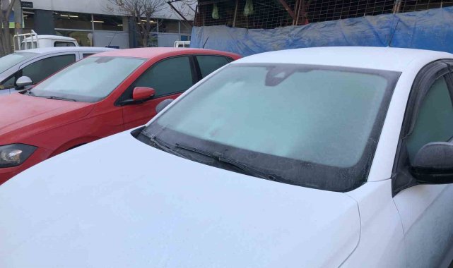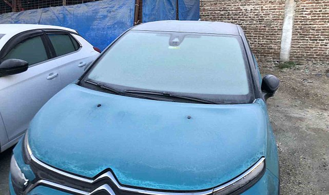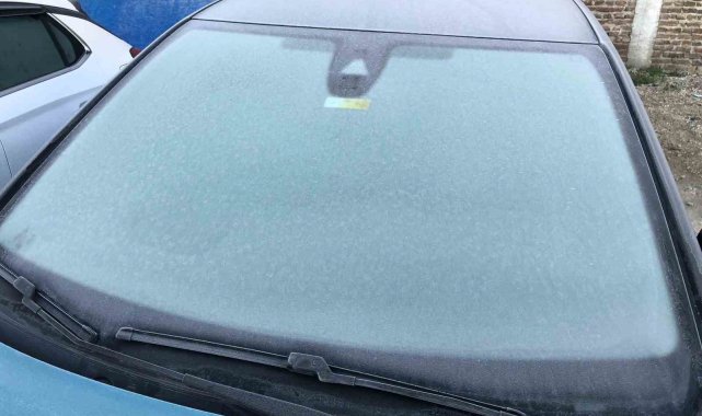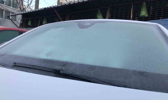 Eskişehir'de hava sıcaklıkların en düşük olduğu sabah saatlerinde arabaların camlarında buzlanma oluştu.