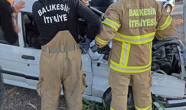 Balıkesir'in Burhaniye ilçesinde sürücüsünün direksiyon hakimiyetini kaybettiği otomobil tek taraflı kaza yaptı. Araç içinde sıkışan sürücü itfaiyenin çalışması ile kurtarıldı.