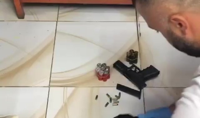 Araç lastiği satılan işyerinde lastiklerin içinde silahlar çıktı