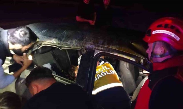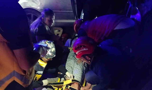 Araçta sıkışan sürücü yaralı olarak çıkarıldı