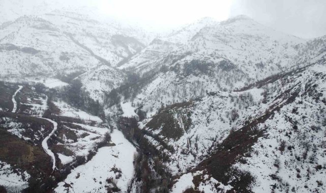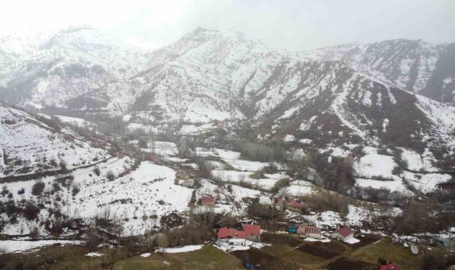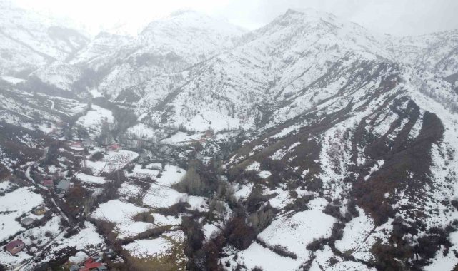Malatya'nın Arapgir ilçesinde etkili olan kar yağışı sonrası kartpostallık görüntüler oluştu. Kar manzarası havadan görüntülendi.