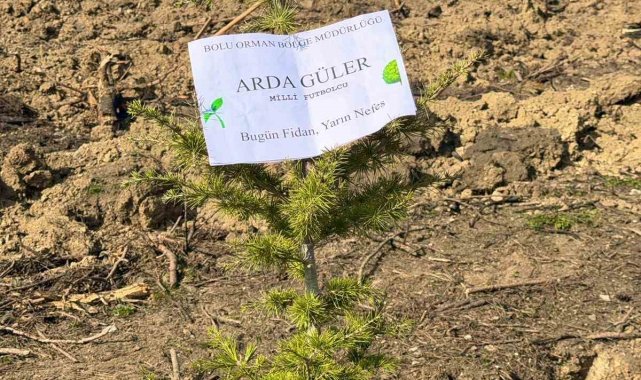 Bolu'da 11 Kasım Milli Ağaçlandırma Günü dolayısıyla düzenlenen etkinlikte, Bolulu milli futbolcu Arda Güler adına fidan dikildi.Mudurnu ilçesine bağlı Delice köyünde, 15 Temmuz günü çıkan orman yangınında zarar gören bölgelerde yeniden hayat filizleniyor. 11 Kasım Milli Ağaçlandırma Günü kapsamında düzenlenen etkinlikte binlerce fidan toprakla buluştu. Etkinlikte Bolulu milli futbolcu Arda Güler adına da fidan dikildi.Arda Güler adına fidanı diken Bolu Valisi Abdulaziz Aydın, "Bugün sevdamız yeşil vatan mottosuyla gerçekleştirdiğimiz 11 Kasım Milli Ağaçlandırma Günü'nde hemşehrimiz, ülkemizin gururu Arda Güler kardeşimiz için de bir fidanı toprakla buluşturduk" dedi.