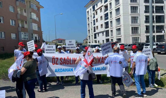 Ardahan'da Öz Sağlık İş Sendikası üyeleri, Kamu çerçeve protokolü görüşmelerinde yaşanan tıkanmayı protesto etmek için basın açıklaması yaptı, ardından oturma eylemi gerçekleştirdi.