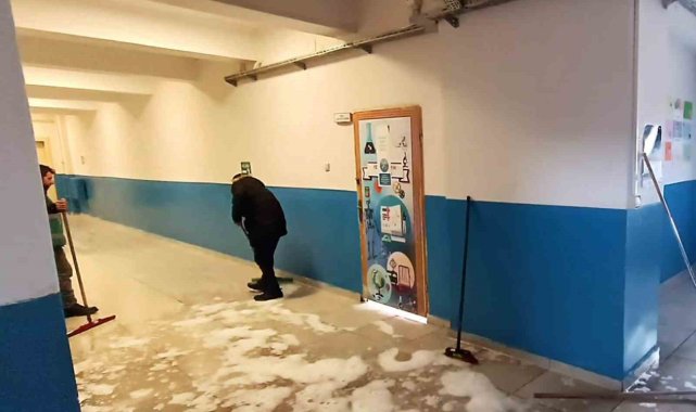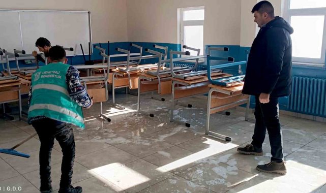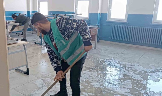 Denetimli serbestlik tedbiri altındaki hükümlüler, ara tatilde Hanak ilçesindeki 1 okulda temizlik bakım onarım çalışması yaptı.