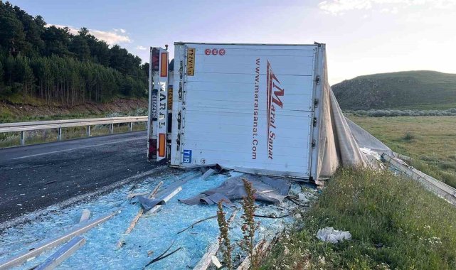 Ardahan-Göle karayolunda devrilen tırın sürücüsü yaralandı.