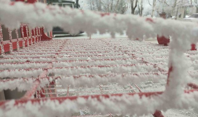 Sibirya soğuklarının etkili olduğu Ardahan'ı kırağı kapladı. Soğuk hava nedeniyle eşya ve ağaçlar kırağı tuttu.
